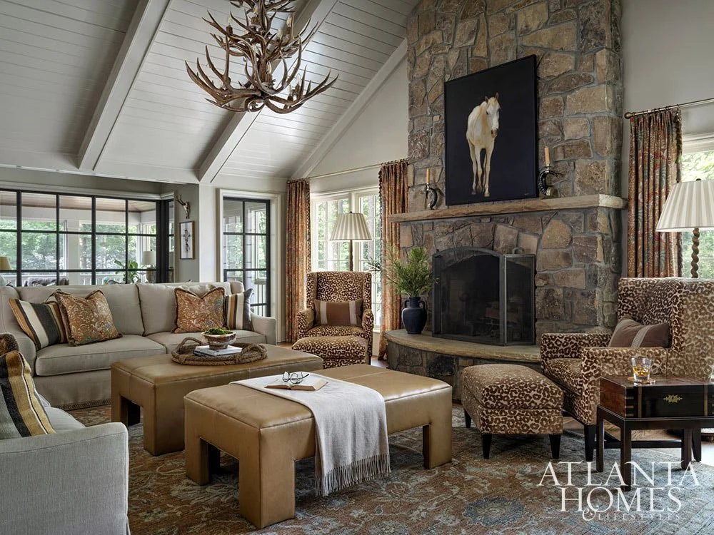Studio Entourage's Jane Hollman transformed her family’s Atlanta home using rich earth tones, layered textures, and classic equestrian elements—creating a cozy, sophisticated farmhouse with enduring appeal.