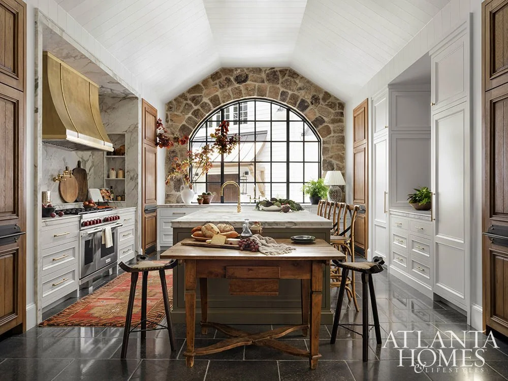 A pair of empty nesters making the move from a suburban farm to Ansley Park enlisted a team of Atlanta talents to transform their newly purchased 1912 manse into a fresher, brighter home. Having the ability to host large gatherings was a priority for the couple, thus placing a spotlight on the kitchen.